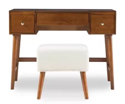 Merci 2-Piece White & Walnut 2-Drawer Lifting Mirror Vanity Set