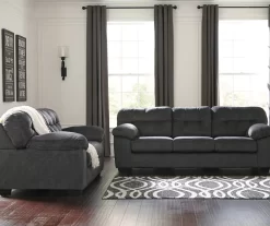 Looking for the perfect blend of decadent comfort and contemporary flair? Feast your eyes on this sensational sofa from Ashley. Tufted box cushioning and thick pillow top armrests brilliantly merge style and a sumptuous feel. Wonderfully plush to the touch, the sofa’s granite gray fabric is the ultimate choice for a chic, trendy look in your living or family room.