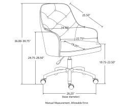 The 360° swivel on this office chair features a convenient height adjuster that makes it easy to adjust its height for desk workers of all body sizes. Middle-back design comes with high-density padded seat cushion and armrest allow you to sit in comfort at your desk for relief from discomfort caused by prolonged sitting while working or studying. Meanwhile, the crafted of cast stainless steel in a gleaming chromed finish, the five-jaw base includes hooded caster wheels for effortless mobility, while a swivel mechanism lets you glide from task to task with ease.