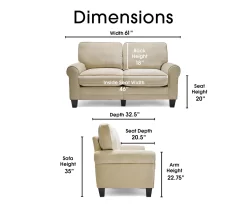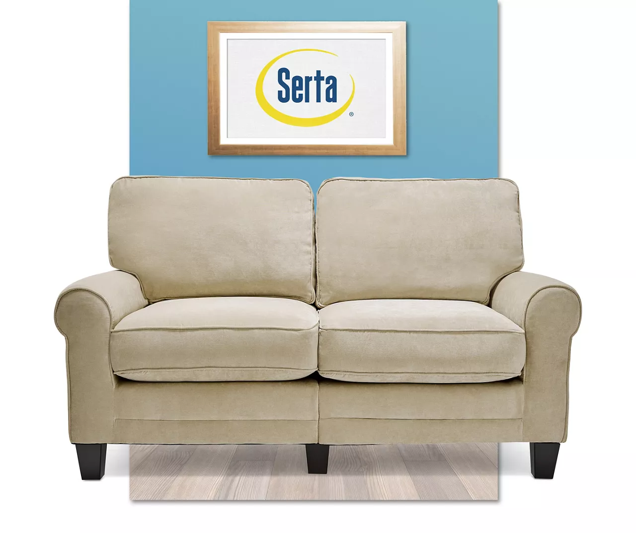 Enjoy functional style and plush, comfortable seating with the Serta Copenhagen loveseat. A great solution for smaller spaces, its compact size and easy tool-free assembly makes it an affordable and stylish seating solution for your apartment, condo or office. Soft rounded arms and pillowy back cushions bring traditional style to your living room, den or game room. Quality hardwood materials deliver strength and stability you can count on, while individually wrapped coils surrounded by high-density foam and poly-fibers provide comfortable seating you can sit back into.