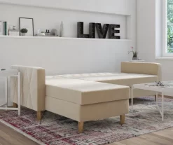 You simply need this CosmoLiving Liberty sectional futon with storage. It’s simple, stylish and the perfect small space solution with its compact design and functional features. Designed with delicately crafted diamond tufting and brass legs for a flawless Instagram-worthy look, the chaise can be configured to set up on either side of the futon and the wide storage compartment is perfect to hold off-season clothing (or that laundry you needed to do, like yesterday). The adjustable back allows you to recline to kick it comfortably or lie flat for the best night sleep you never had.