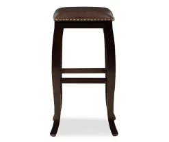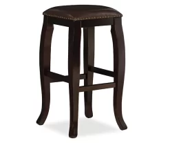 Sophisticated yet versatile, this backless bar stool features a curved silhouette, silver nailhead trim and sleek brown faux leather upholstery. A cushioned seat and foot rests ensure comfort and stability. Perfect for nearly any aesthetic, this stool offers an elegant simplicity that complements a variety of styles from modern to rustic.