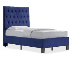 The Decatur twin upholstered bed from Willow River will be an instant centerpiece of style in your room. This contemporary platform bed has a classic silhouette, rich fabric in a bold color and button tufting for a sophisticated design that exemplifies transitional style in a master or guest bedroom.