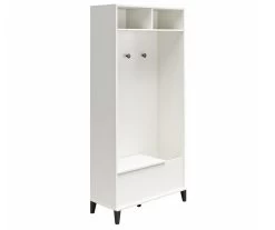 You’ve made your home the oasis you’ve always dreamt of, a home gym for you, a mini sports complex in the yard for the kids, everything is right where you need it. But you’re still missing one thing – Flexible Storage. The Amplus gym storage cabinet has you covered. Constructed from engineered wood with a neutral finish to match any décor, this cabinet features an ample and diverse storage solution to take home organization to the next level. Take the yoga mat out of the closet and store it in plain sight in the open storage cubby below. Store hats, boxing gloves and other items in the two spacious cubbies above and hang jackets or hats on the three convenient hanging knobs. When the day is through, take a load off and undo those laces after a rewarding workout on the built-in bench. Then simply lift the bench seat and neatly store away your gym shoes in the closed storage space below.