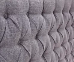 - Gray upholstered linen headboard adds royal elegance to your master suite