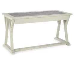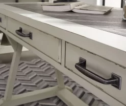 Can’t decide between farmhouse or industrial style? Make a striking compromise with this home office desk. Generously scaled and loaded with charm, it includes a trio of smooth-gliding drawers to help you stay organized. Faux cement top insert adds another layer of interest.