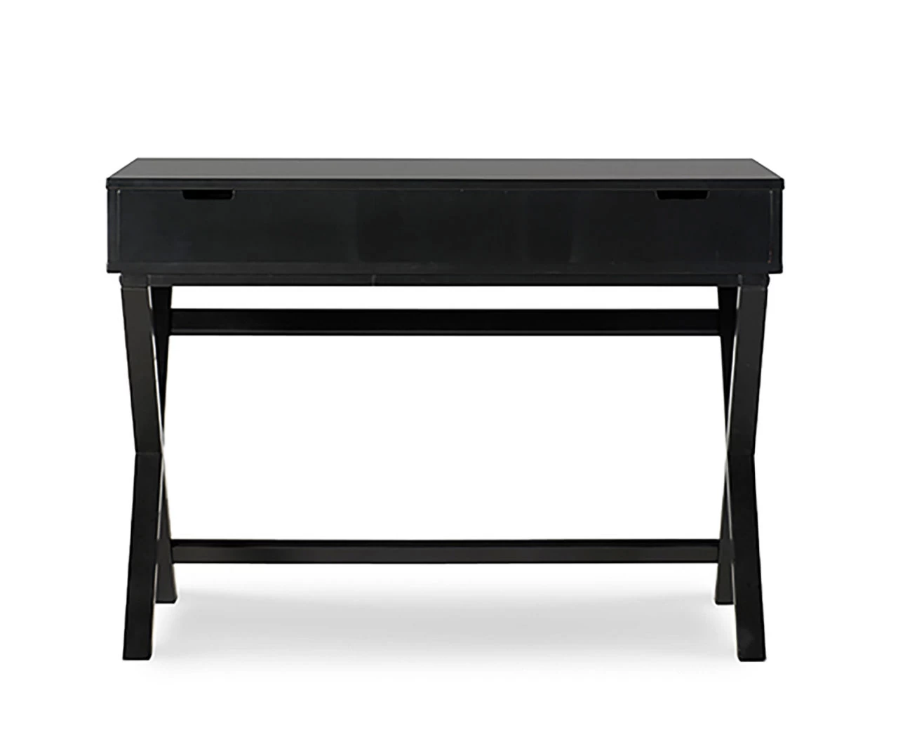 This campaign-style, lift-top desk is the perfect option for any home, office or dorm room. The simple design and X-frame legs will save you space, while still providing plenty of room for your books, laptop, tablet or mail. The lift-top provides tons of additional storage space for things you’d like to keep tucked away. The smooth black finish will complement any decor color scheme.