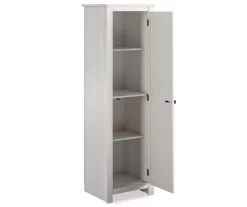 Store and organized anything from canned goods to small appliances in modern farmhouse design using the Ameriwood Lincoln single door kitchen pantry. This beautiful storage solution features an off-white woodgrain finish paired with a beaded door insert to bring a rustic touch to your kitchen. Opening the door reveals four interior shelves with adjustable options for all your culinary and houseware needs. This versatile piece can also be used in any room of your home to add valuable storage where you need it most.