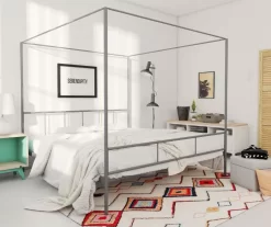 The Novogratz Marion canopy bed is stylish and classy. Designed with a clean silhouette, this eye-catching piece is crafted in solid and sturdy metal that is stable and durable with secure metal slats that do not require a foundation. It comes with a sophisticated headboard and footboard and with metal side rails and center legs to provide full support and comfort to you and your mattress. The Marion is also practical with 11″Â of clearance beneath the bed, ideal to store things away.