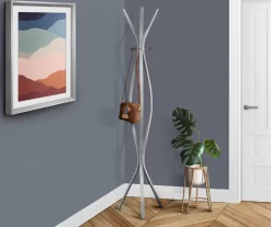 Are you looking for a stylish way to keep coats neatly organized and easily accessible? The wave shape of this freestanding coat rack will bring an elegant, contemporary look to your entryway, hallway or office. It includes three hooks with a long, peg-like shape for securely hanging your most-used jackets, scarves or bags. Ideal for smaller rooms, this white metal coat rack has a streamlined look and compact profile that won’t take up a lot of space in a corner or next to a door.