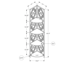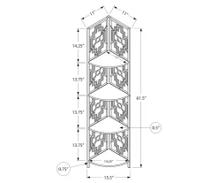 Let this stylish corner bookcase conquer the clutter in your home, apartment or condo. The black metal frame features a transitional design with four matching display shelves perfect for photo frames, plants, accessories and other decorative items. This storage accent piece will add a touch of elegance to any room in your home.