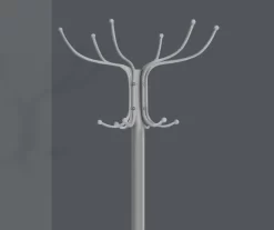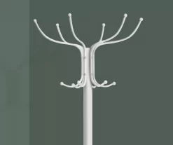 Both convenient and essential to your entrance, living room, family room or bedroom, this free standing coat rack is the ideal accessory to minimize clutter and take up less space in your small home, apartment, condo or dorm. Easy to use, it features 12 hooks and a wide base to catch and evenly distribute the weight of your jackets, hats, scarves and other apparel. With a white metal finish, this coat tree is a stylish and functional item you simply must have for effective storage. Keep all those accessories together in an efficient, organized way.