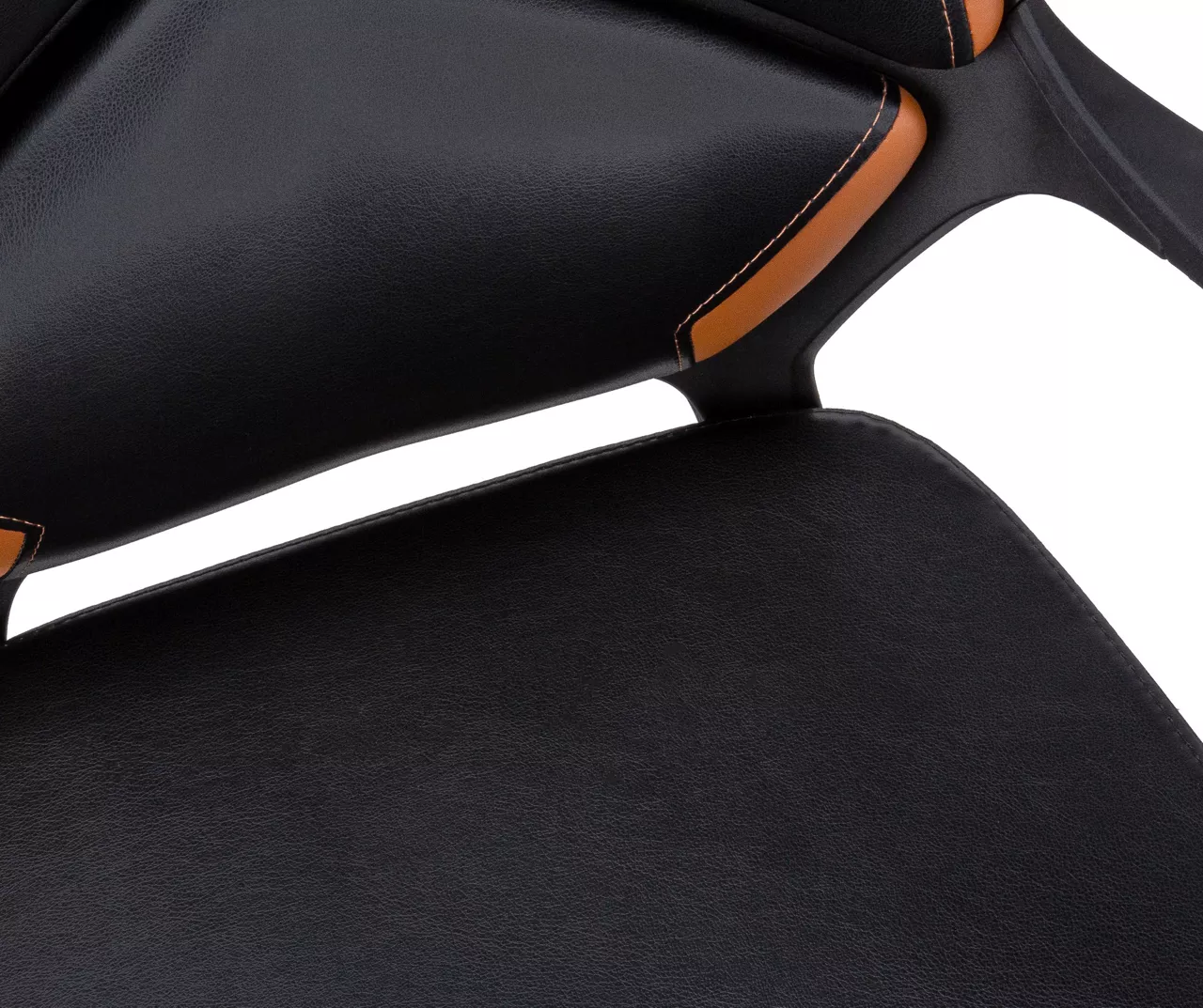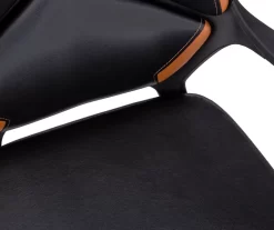 - Upholstered in durable and breathable black faux leather material with brown accents