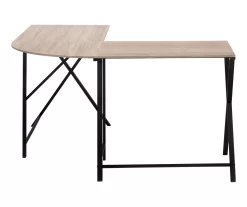 When you don’t have a lot of space but need to setup your own workstation, then start with this minimalist, contemporary style, L-shaped corner computer desk. The two spacious work surfaces, finished in a smooth dark taupe wood look laminate, are brought together with a curved corner piece giving you maximum space to spread out your documents, place your laptop, a lamp and a few office accessories. Everything is visible and within reach with this convenient corner desk that is supported with solid black metal frame and cross legs at each end, bringing the simplicity up a notch.