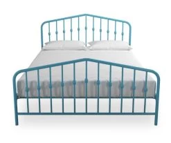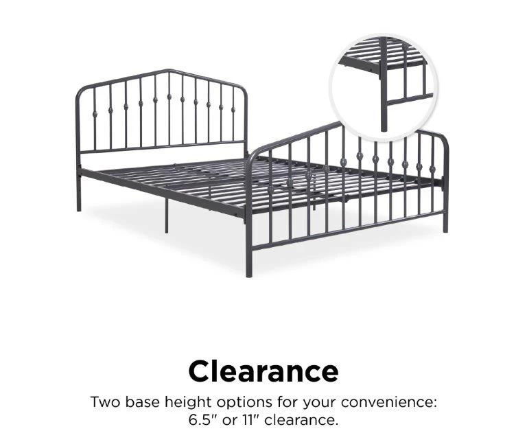 Enjoy sleek, industrial modern style with the Novogratz Bushwick metal full bed. The headboard and footboard feature stylish round finial posts, while the sturdy metal frame construction with metal side rails ensures both stability and durability. With two base heights for convenience and a stunning gunmetal gray color, this bed is the ultimate fusion of form and function.