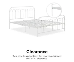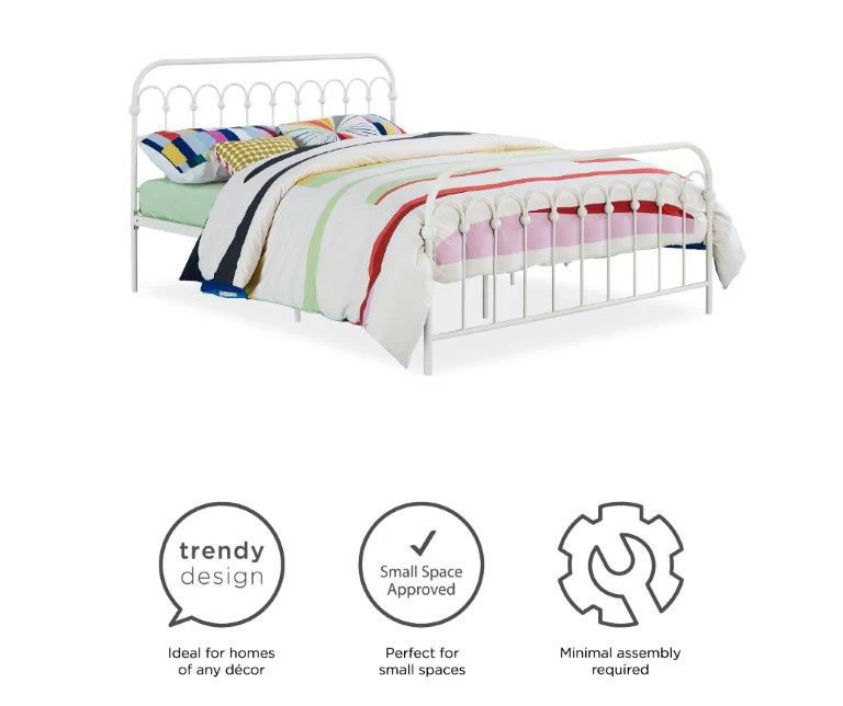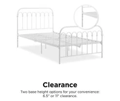 Give your bedroom a scheme lift with the unique Novogratz Bright Pop metal twin bed. Its curved headboard and footboard feature a scalloped design with metal embellishments for a bold and vibrant look. Complete with metal slats, side rails and center legs, this bed provides full support and comfort to the body and mattress. For convenience, this bed has two base heights — 6.5″ or 11″ clearance. Simple, yet full of look the Novogratz Bright Pop metal twin bed will be the center of attention in your bedroom.