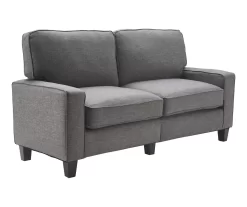 Ideal for small living spaces, the Serta Palisades loveseat instantly livens up rooms with its effortless, functional style. This modern loveseat has a compact size and unique, tool-free assembly, making it a great seating solution for apartments, offices, and dorms. Rich upholstery, square footers and straight arms bring a modern flair to any living room, guest room or home office, creating a warm and inviting space where you and your guests will want to sit and relax. Individually wrapped coils and pillowed back cushions offer a cozy yet supportive seating to read, chat, or watch TV.