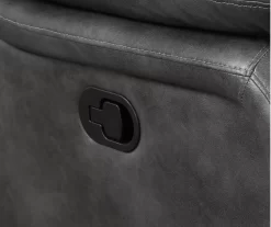 Treat yourself to a strong, stylish look with this gray Paulson faux leather gliding recliner from Willow River. Beautifully styled with lovely gray faux leather and a pillow top back, this recliner truly exemplifies sophisticated, contemporary style in a lovely steel gray color palette. And, because it features a lever pull design and generously padded cushions, you’ll be able to dine in unparalleled comfort.