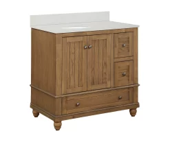 - Rustic oak in a weathered brown finish looks great with any style and décor