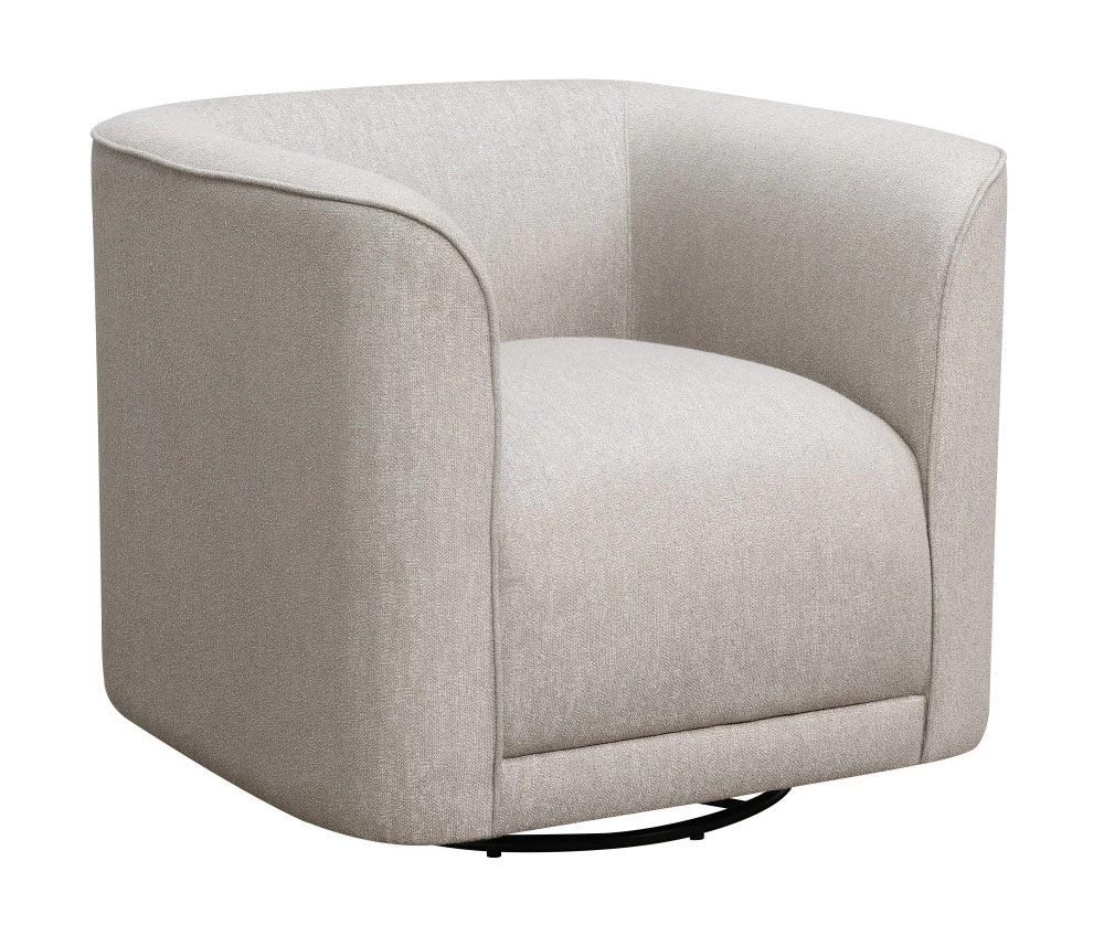 Relax in modern comfort with this swivel accent chair. The wood frame is cushioned with pocketed coils and sinuous springs, and upholstered in your choice of cream or grey for lasting style. Swivel 360° while you enjoy your favorite television show or book.