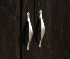 - Decorative door pull handles in a contrasting silver finish