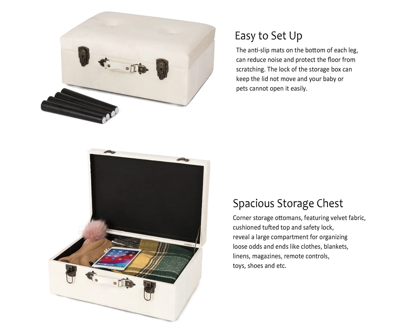 - Versatile use as a stool, ottoman, storage case and more