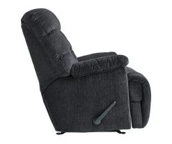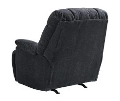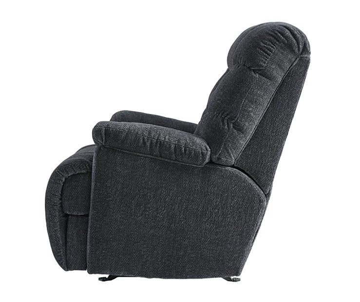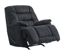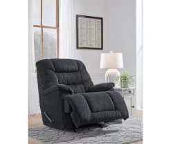 Sit back, relax and kick up your feet. Immerse yourself in total comfort as the Bridgtrail rocker recliner embraces you with the cool look of leather and the warm, cozy feel of fabric. Plush, pillowy cushions, an oversize headrest pillow and wide pillowtop armrests feature heavyweight stitching in a stunning shade of charcoal gray. The warm, welcoming look fits easily with other colors in the room and is right at home with a variety of design styles. A comfortable big and tall high-back profile allows an abundance of softness that is over the top.