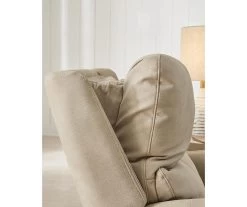 - Water-repellent faux leather upholstery in a neutral sand tone