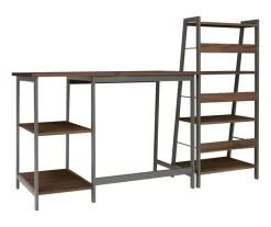 Make it work in high style with this laptop desk with bookcase. The Soho furniture set comes with a sleek desk with two shelves to hold your desktop or a printer. Use the four-shelf bookcase to hold textbooks or reference materials. Distressed warm brown and gunmetal finishes give the modern, open-concept design a dramatic touch.
