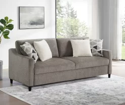 Sure to adapt beautifully to various interior styles, the Stockton convertible sleeper sofa by Broyhill is the perfect addition to your living room or family room. Unlike traditional sleeper sofas, this convertible sofa has a unique pop-up feature that extends the sofa’s length for lounging or can be used as a sleeper with no mattress required. The sleek silhouette has clean lines, track arms and a chenille-feel fabric that is soft to the touch. It is the perfect choice for comfort and functionality.