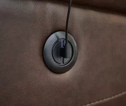 - Walnut brown top grain Italian leather with matching faux leather on outside back and sides