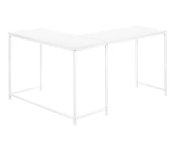 Delivering the best of both worlds, this L-shaped computer desk is both spacious and compact while accommodating everything you need for productivity. With its L shape, this desk won’t take up too much space when placed in a corner but is finished on all sides so you can position it however you choose in a home office. Both the desktop panels have a white finish and the black metal base is slender yet sturdy, giving this desk a modern simplicity that coordinates with most décors.