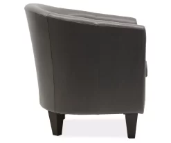 This sleek and stylish tub chair upholstered in gray faux leather makes a bold, contemporary statement in any living space. The lightweight, yet extremely durable frame makes it a must have for any room. Featuring a classic round shape with raised arms and exposed tapered feet, this accent chair will be a focal point of the living room, family room or study.